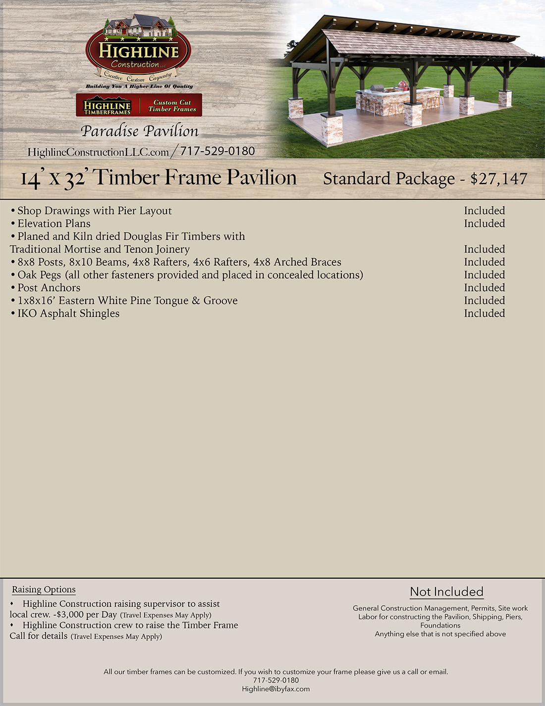 The Paradise Pavilion stands out for its distinctive design. It boasts a shed roof adorned with prominent timber beams, providing ample space for outdoor living. The scrolled ends of the rafters contribute to the pavilion’s unique and charming appeal.